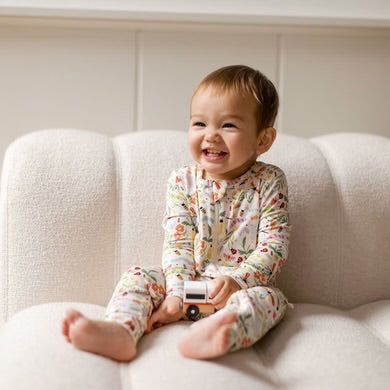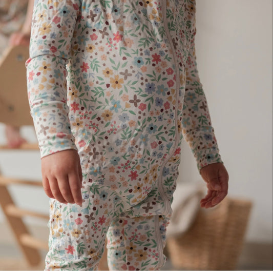 Sunrise Floral Ribbed Bamboo Footed Sleeper
